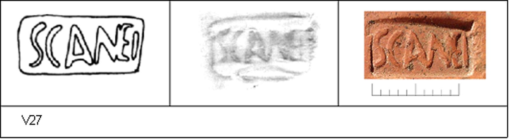 | Stamp No | context | excavation | findspot | form | fabric | present | inventory | potter No | Die No | pos | def | comment | Reference |