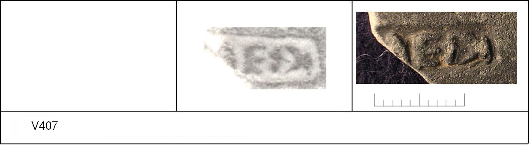| 407 | 1932H&H | Sheepen I | Colchester | Platter | TN | Colchester Museum | C32BS35 | 36 | 01A01 | C | N | Die 01A01 - MEI-)I crossed D Radial. TN - fine pale sandy matrix; dark B/G worn surfaces, no finish. Reading:- [M]EI-)I (crossed D). 1. 2 RW. |