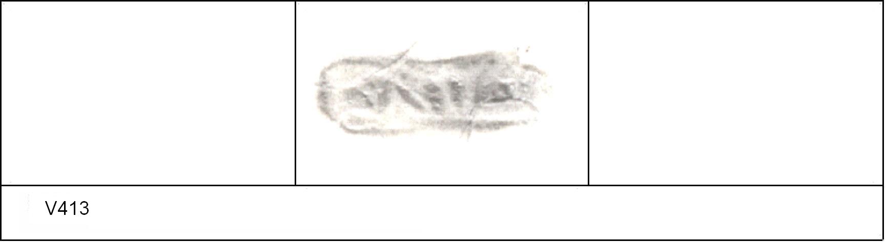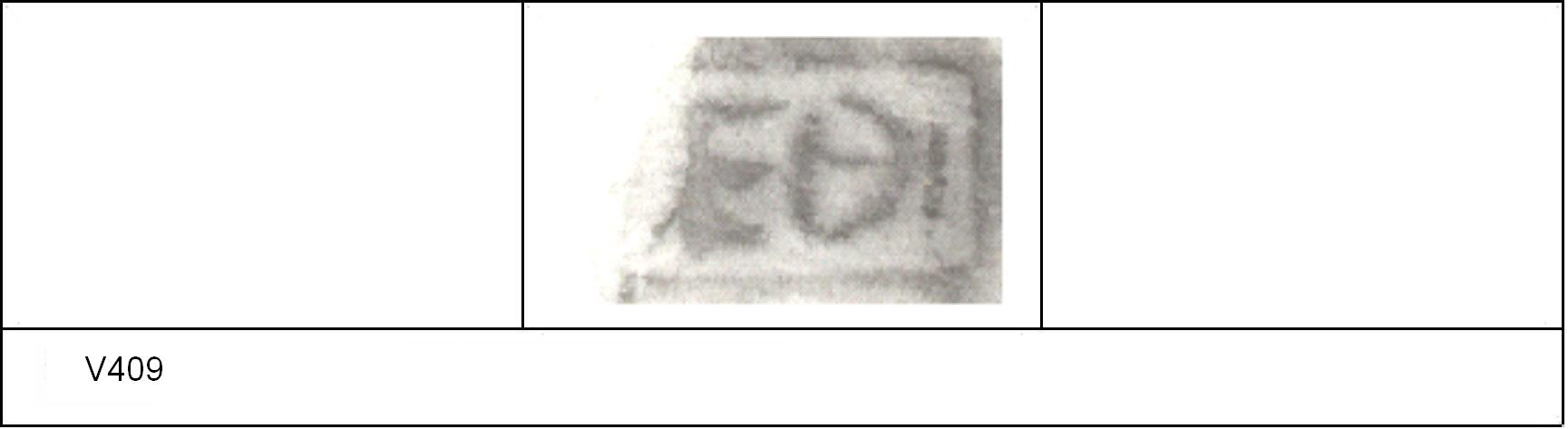 | 415 | Sheepen Rd allotment | Sheepen | Colchester | Cam 8 | TR 1C | Colchester Museum | 27.62 | 64 | 01B01 | C | Y | Die 01B01 - probably not the same die-cutter as 01A01 Cam 8/7. TR1C - red fine sandy matrix; darker slip; polished upper, matt lower. Border. Reading:- MAROSI. 1. 1 single strand RW. Calver Collection found on Sheepen Rd allotments |