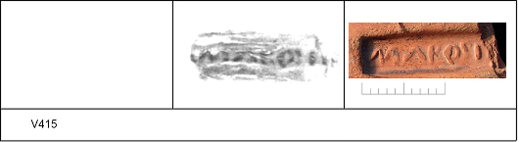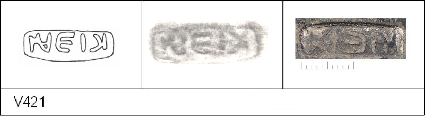 | Stamp No | context | excavation | findspot | form | fabric | present | inventory | potter No | Die No | pos | def | comment | Reference |