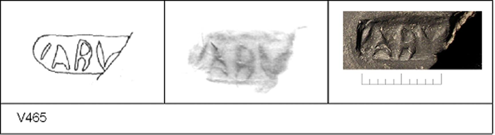 | 465 | Unknown | May 1916 | Silchester | Platter | TN | Reading Museum | 1992.1.1730 | 134 | 01A01 | C | Y | Central - ? Cam 16. .TN - fine grey matrix; G/B surfaces; polished upper, streaky finish lower. Reading:- IABV[DOS]. 1. 2 BC. | ||