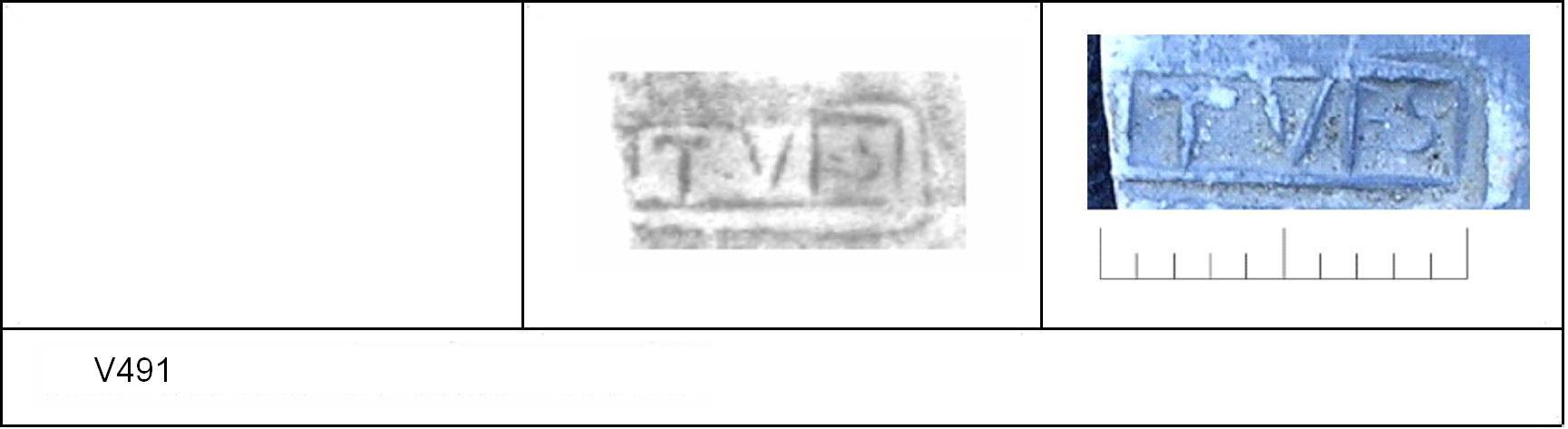 | 491 | 1930H&H | Sheepen I | Colchester | Platter | TN | Colchester Museum | C30B74 | 23 | 01B01 | R | N | Die 01B01 Radial. TN - pale sandy matrix; mottled B/G; no finish. Reading:- [VR]ITVES. No decoration |