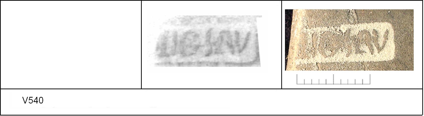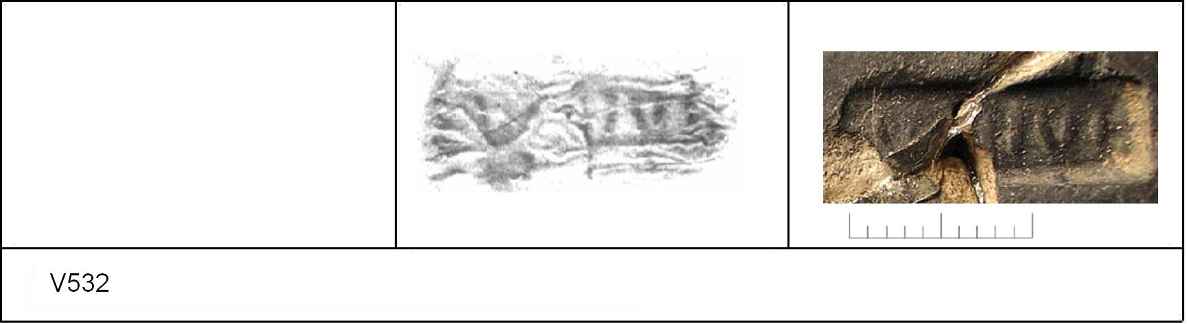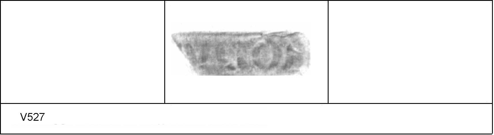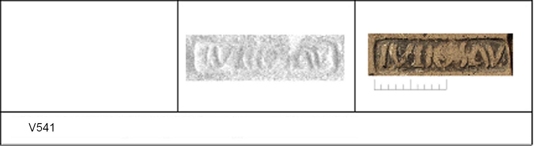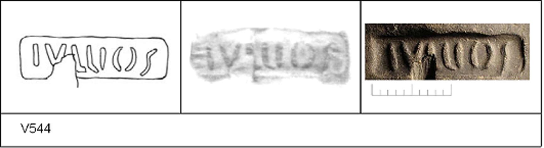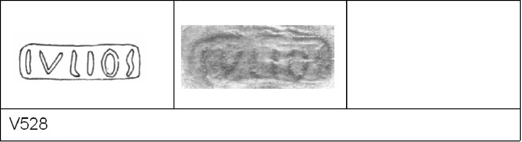 | 538 | BF 6 | Stanway | Colchester | Cam 8 | TN | Colchester Museum | Burial 4 BF6, 13 | 18 | 02J01 | C | N | Dies 02J01, 02J02, 02J04 - IVLIOS/\V = IVLIOS AVOTIS Cam 8 TN - buff fine powdery matrix; B/B very worn surfaces; polished finish. Reading:- IVLIOS/\V = IVLIOS AVOTIS. PAS I. |
