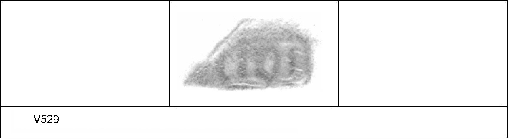 | 528 | 1933H&H | Sheepen I | Colchester | Platter | TN | Colchester Museum | C33BS7 | 18 | 02G02 | C | Y | Dies 02G01, 02G02 Central. TN - pale matrix; black surfaces; no finish . Reading:- IVLIOS. 1. 2 ICs, 1 round stamp. |