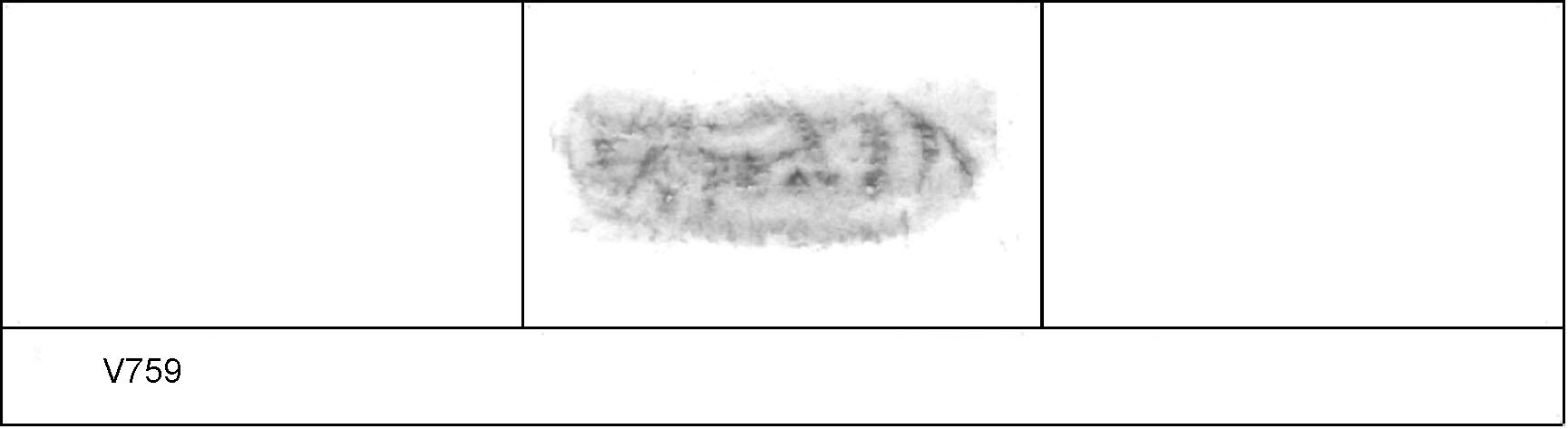 | 750 | Unknown | Cherry Orchard Way | Maidstone | Cam 7 | TN | Maidstone Museum | 176 | 01A01 | C | Y | Cam 7. TN. Uncertain Reading:- IIOCICI. 1. 1 BRW v fine lines. CONDITION - complete. CONTEXT - ? a burial? | |||