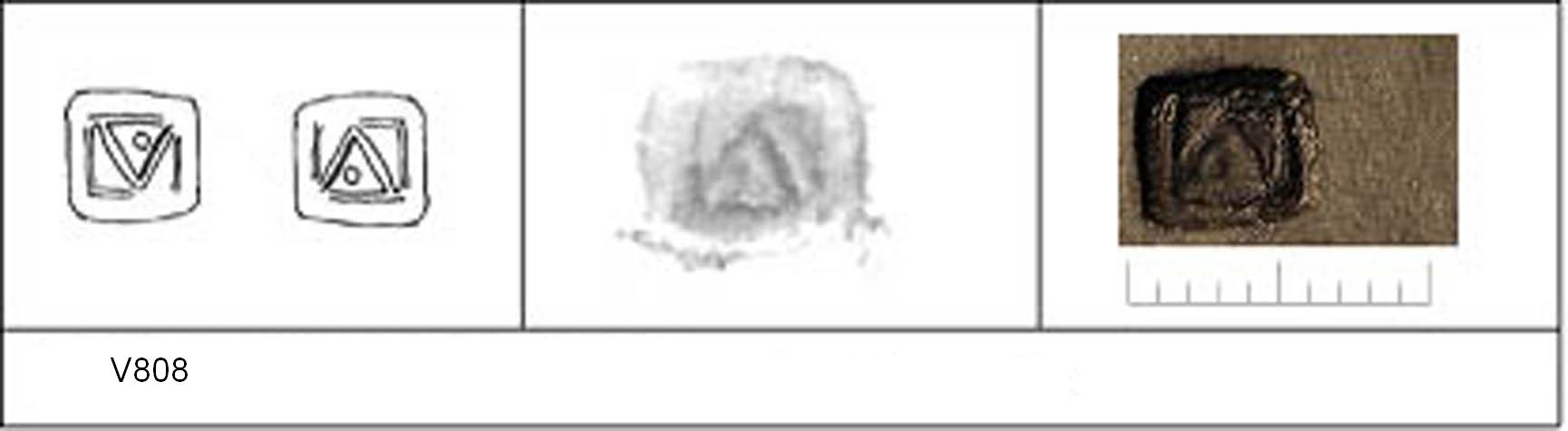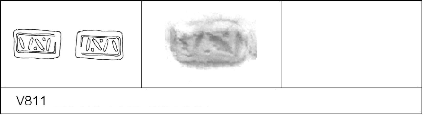 | 811 | 252 | Sheepen II | Colchester | Cam 56 | TN | Colchester Museum | Pit 252 1 | 350 | 01A01 | C | Y | Cam 56S. TN. Border. Mark: \/.\'/ 1. 1 IC. | ||