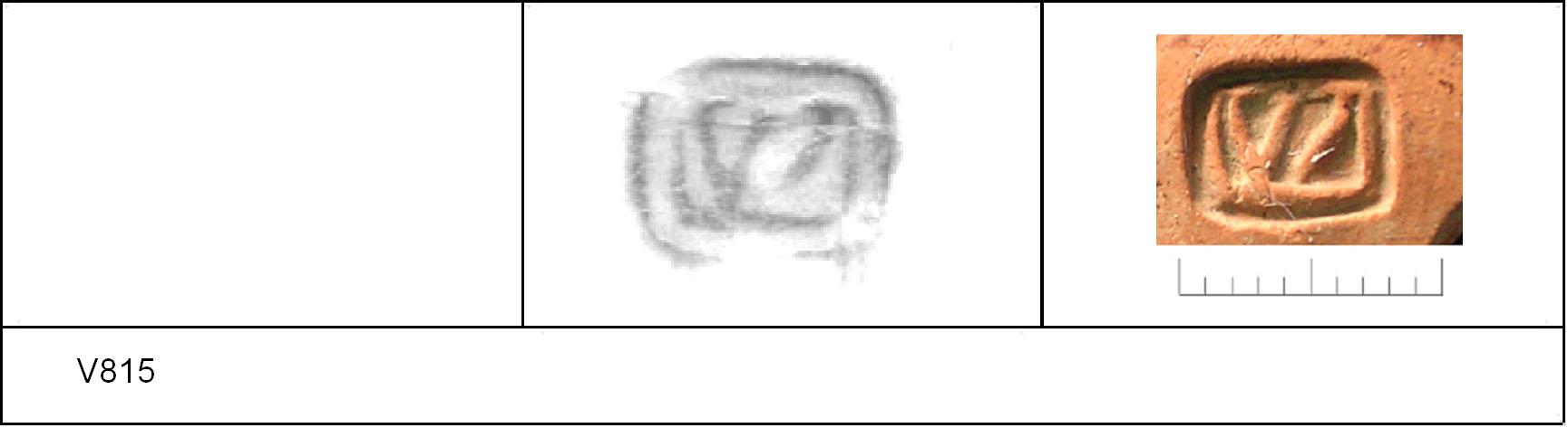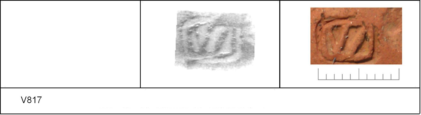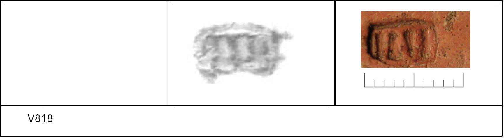 | 815 | Topsoil | Sheepen II | Colchester | Cam 56 | TR 1C | Colchester Museum | 258 | 01A01 | C | N | Cam 56VS, outer diameter = inner diameter of V817. TR1C - fine orange matrix; darker slip; polished upper, matt lower. Border. Mark:- \// or //\. 1. 1 IC. |